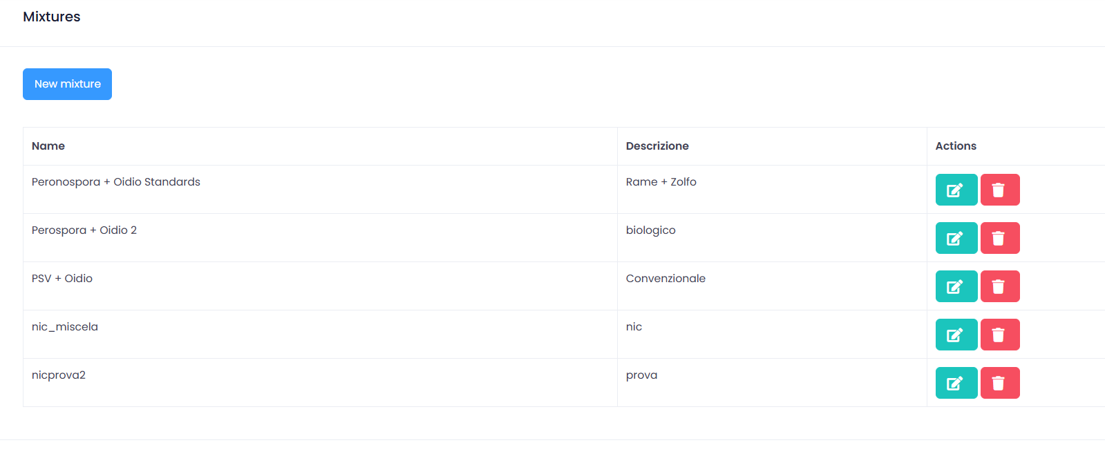 It is also possible to enter a new mixture and/or consult/edit/delete loaded treatment and fertilizer mixtures by clicking on the wheel in the upper right corner.