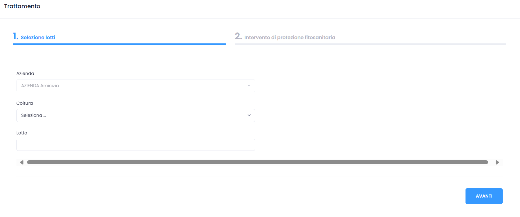 * **Lot Selection**: The first step involves selecting lots by indicating the crop of interest and the lot or lots with that same crop for which you want to upload the treatment. If you make a mistake in adding a batch you can click on the x and the batch will be deleted. You then click on the “next” button